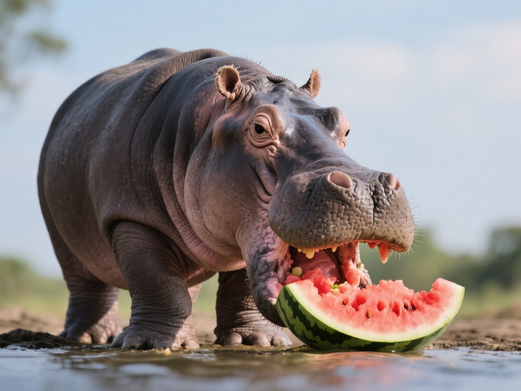 河马作为非洲大陆上最具代表性的动物之一,以其庞大的体型和温和的性格而闻名。它们的日常饮食主要以草本植物为主,但你知道吗?河马偶尔也会对水果表现出极大的兴趣,尤其是像西瓜这样水分丰富、口感清甜的食物。西瓜不仅能为河马提供必要的水分补充,还能带来一丝甜美的味觉享受。尤其是在炎热的夏季,西瓜几乎成了河马的“天然冰淇淋”。
